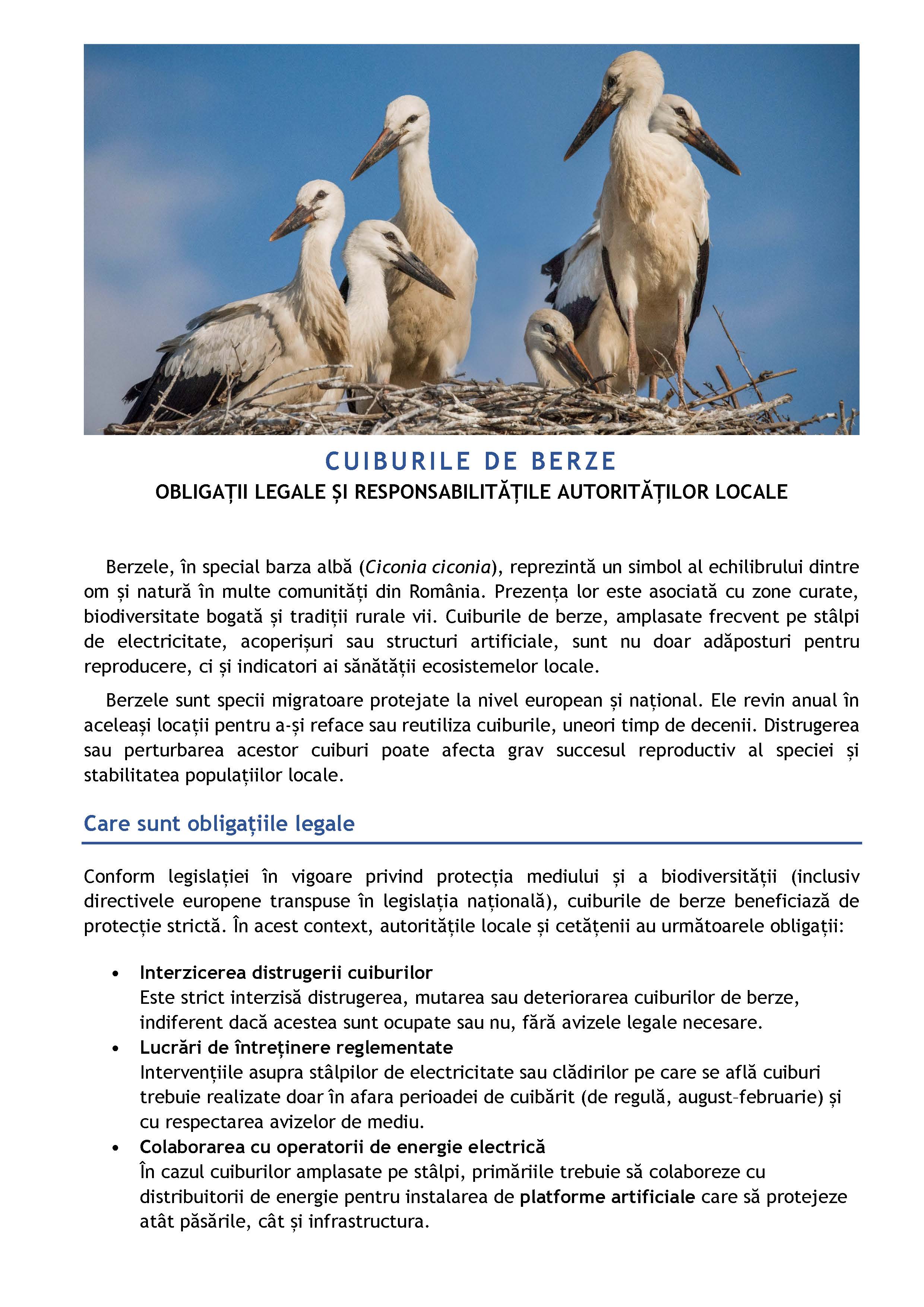 Primăria Comunei Ștefan cel Mare aduce la cunoștința cetățenilor faptul că berzele sunt specii protejate, iar cuiburile acestora beneficiază de protecție legală strictă, conform legislației privind protecția mediului.