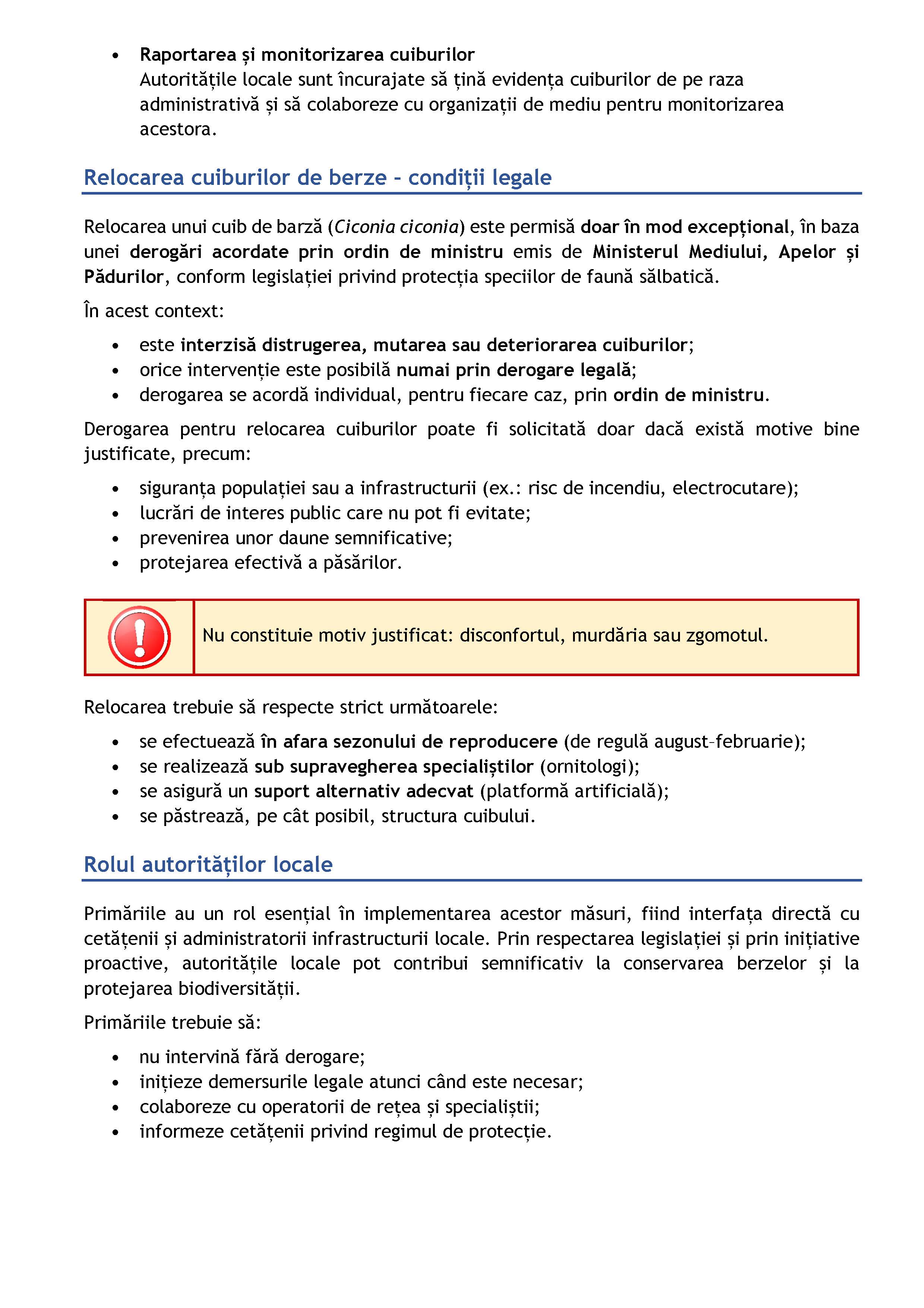 distrugerea, mutarea sau deteriorarea cuiburilor de berze, indiferent dacă sunt ocupate sau nu;